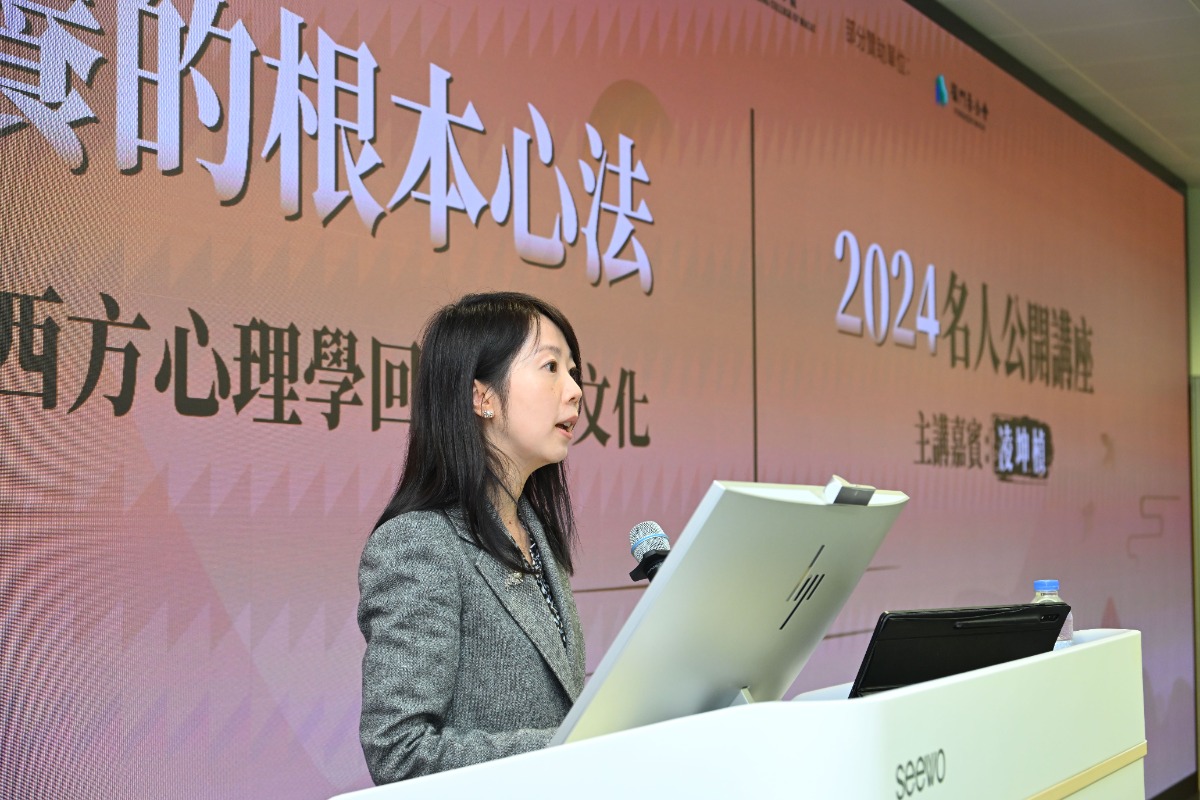 本次講座籌委會主席黃婉妍致辭時表示,心理治療技術與心理療愈功能具有豐富的文化適應潛能。現代的心理治療方法不僅擁有獨特的實踐理路與人體健康分析的多層維度,更持續在文化交流和吸收中華文化傳統深厚精神資源的過程中,充實其人文關懷,使西方心理學拓寬實踐的向度,並達到人體内在療愈以中華傳統文化為靈感的創新效果。