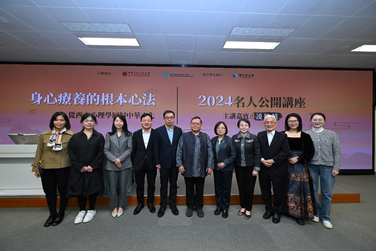 11月30日,由中華文化交流協會、澳門鏡湖護理學院共同主辦的“2024名人公開講座”,邀請到台灣催眠與NLP學習網站創始人暨首席講師凌坤楨作出“身心療愈的根本心法——從西方心理學回歸中華文化”的主題演講,本次活動獲得澳門基金會部分贊助。出席講座的主要嘉賓有中聯辦台務部部長李永剛、一級調研員陳鵬隆、中華文化交流協會理事長崔世平、澳門鏡湖護理學院院長尹一橋、中華文化交流協會秘書長吳慧群、講座籌委會主席、常務理事黃婉妍等以及本澳醫療專業界別人士、多所學校師生等一百五十人參與,講座可獲可持續課程培訓證書。